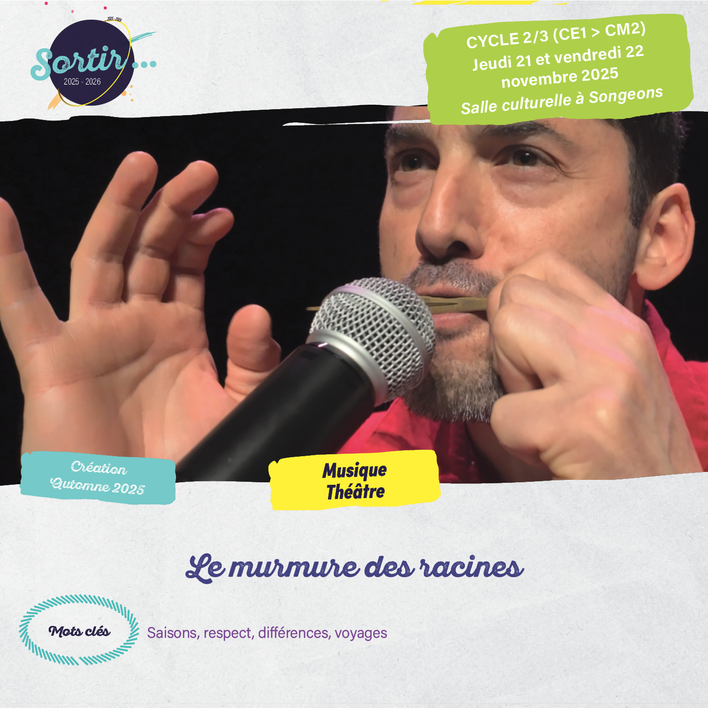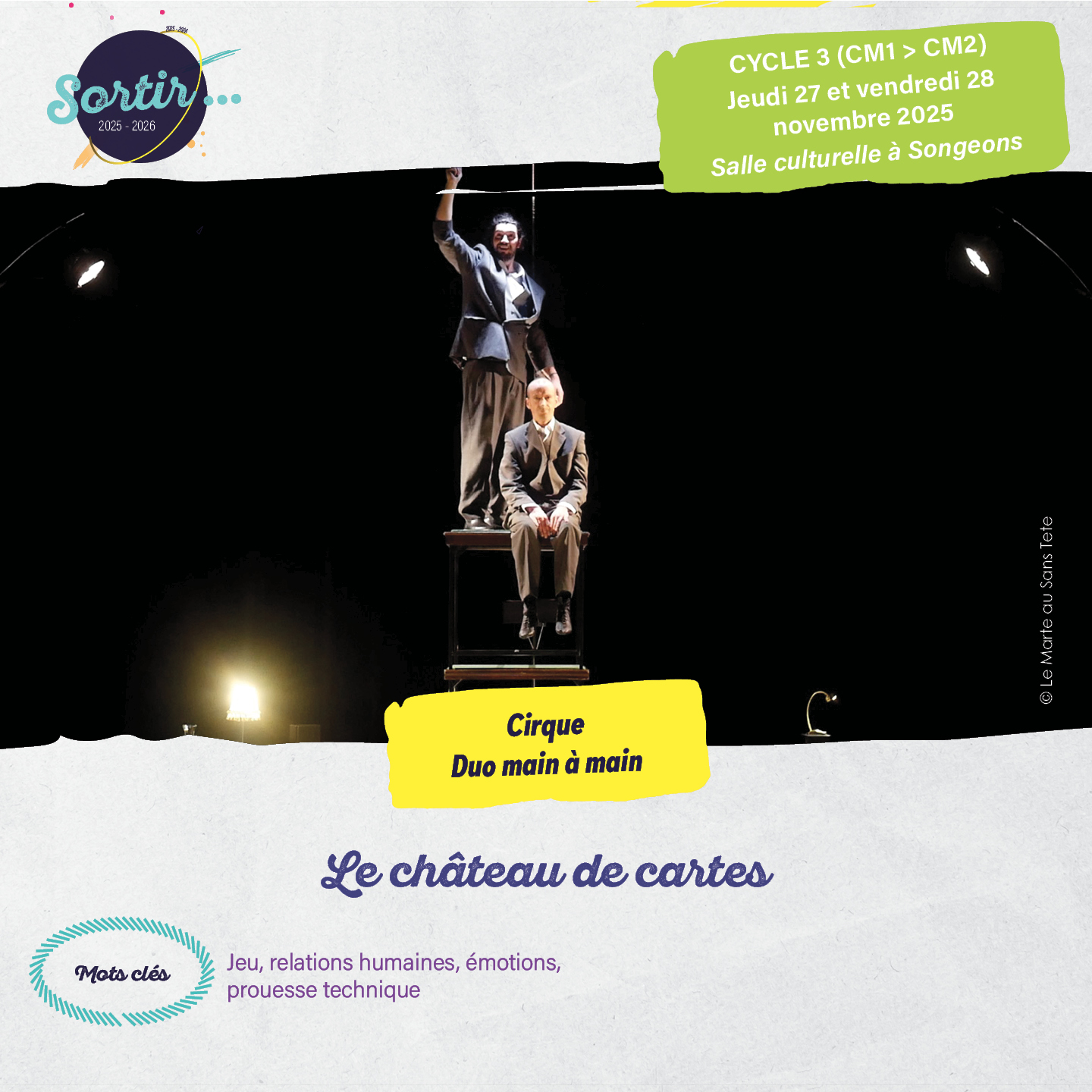 Enfin, de nombreuses compagnies programmées proposent des actions culturelles autour de leurs créations, et les acteurs culturels locaux (écoles de musique, de cirque, médiathèques, etc.) peuvent prolonger cette découverte par des ateliers de pratique artistique dans vos écoles. N’hésitez pas à contacter le service culturel si vous souhaitez monter un projet dans votre classe.